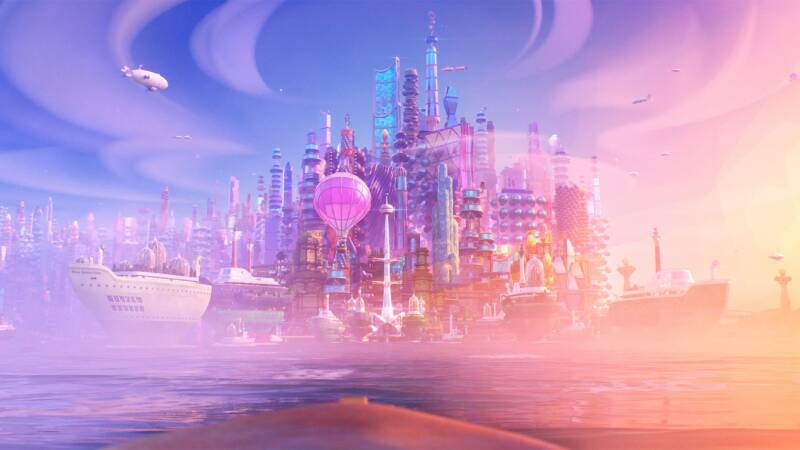 The opening is a montage of two Firish immigrants, one of which is heavily pregnant, arriving in Element City on a boat, full of hope, taking in the splendour of the world. We observe a Great Gatsby-esque light shining through the fog scene. Drawing attention to the similarity between this scene in Elemental to that in Baz Luhrmann’s 2013 Great Gatsby we can talk about light as a recurring symbol of hope, longing, and the dream of living in a successful community. In the Great Gatsby, the American Dream was something everyone wanted. In Elemental, Element City is meant to be a beacon of unity, freedom, and opportunity that everyone wants. Seeing the city obscured by fog, with only a redish glow indicating it was even there, to then be unveiled with the red light framing the city as if it was a sunset, represents the Fires desire for a new start. Unlike the Great Gatsby, the light in Elemental is not out of reach, although it could be argued that the unity between Elements is out of reach.