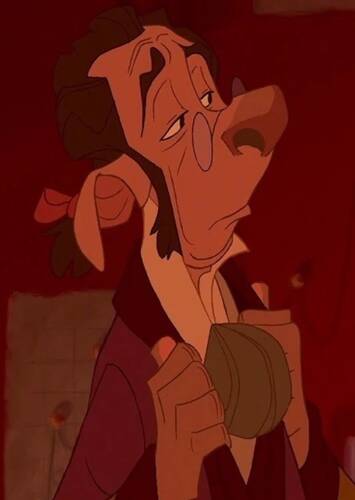 The character of Delbert, a family friend to Jim and Sarah, is goofy. He is a form of comedic relief. But he's endearing, means well and has an adventurous heart that matches Jim's. He's a moral compass. But he's not meant to be Jim's father figure, even though he could be one. He is in fact an enabler to Jim's adventurous side, a plot point if you will. He chooses to accompany Jim to study the famed Treasure Planet, home to the mass hoard of Captain Flint. And what I love about Delbert is he isn't your typical 'incapable stumbling nerd'. The film doesn't define its characters with those types of stereotypes. Everyone can be heroic, brave, capable. Delbert the canid historian? He's handy with a gun. That one flatulent slug monster? They're a tough ship deck hand. Amelia, a lithe and charismatic cat person, is the ship’s captain, despite being a female character in the year 2002. The cyborg is the ship's chef, and totally not the same pirate from the beginning of the film who destroyed Jim's home, and who will definitely not lead a mutiny on Captain Amelia’s ship.